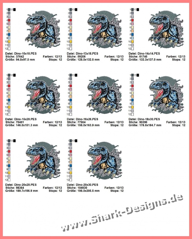 Dino Tino Die Stickdatei In 8 Urzeitlichen Grossen